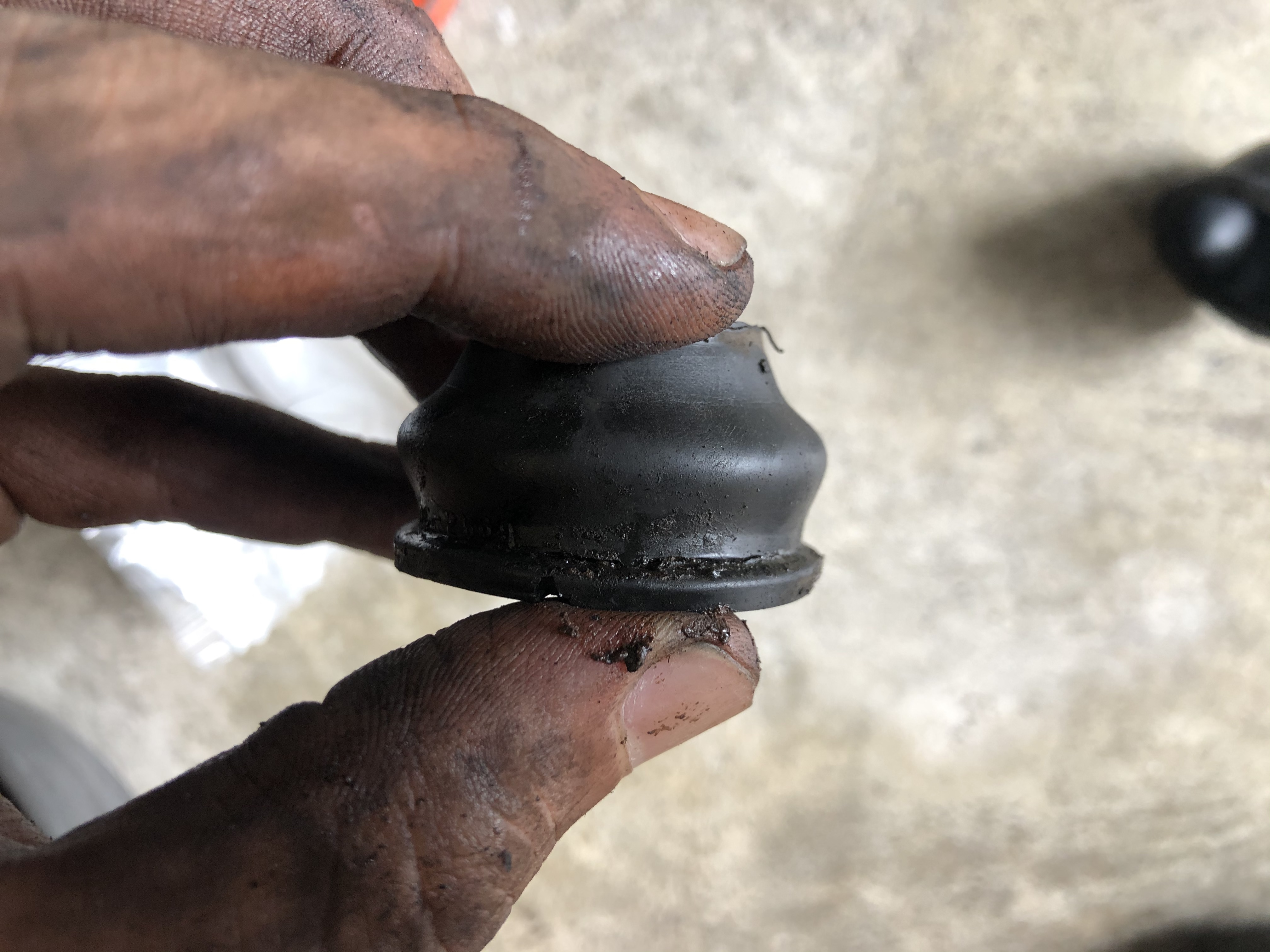 古いブーツは亀裂が入っていて、グリスが少し漏れていました。