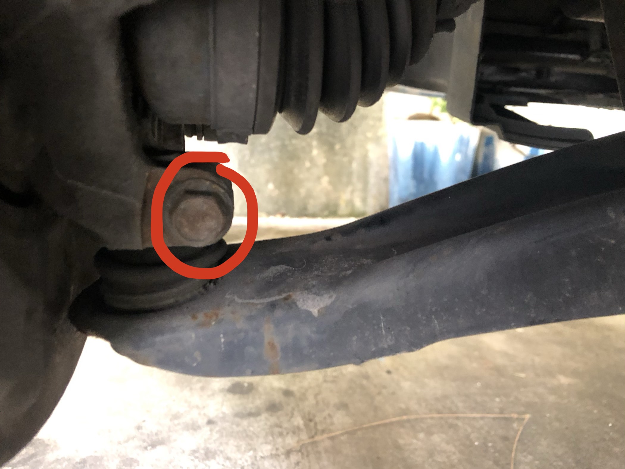 2.ロアアームボールジョイント固定ボルト・ナットを緩める